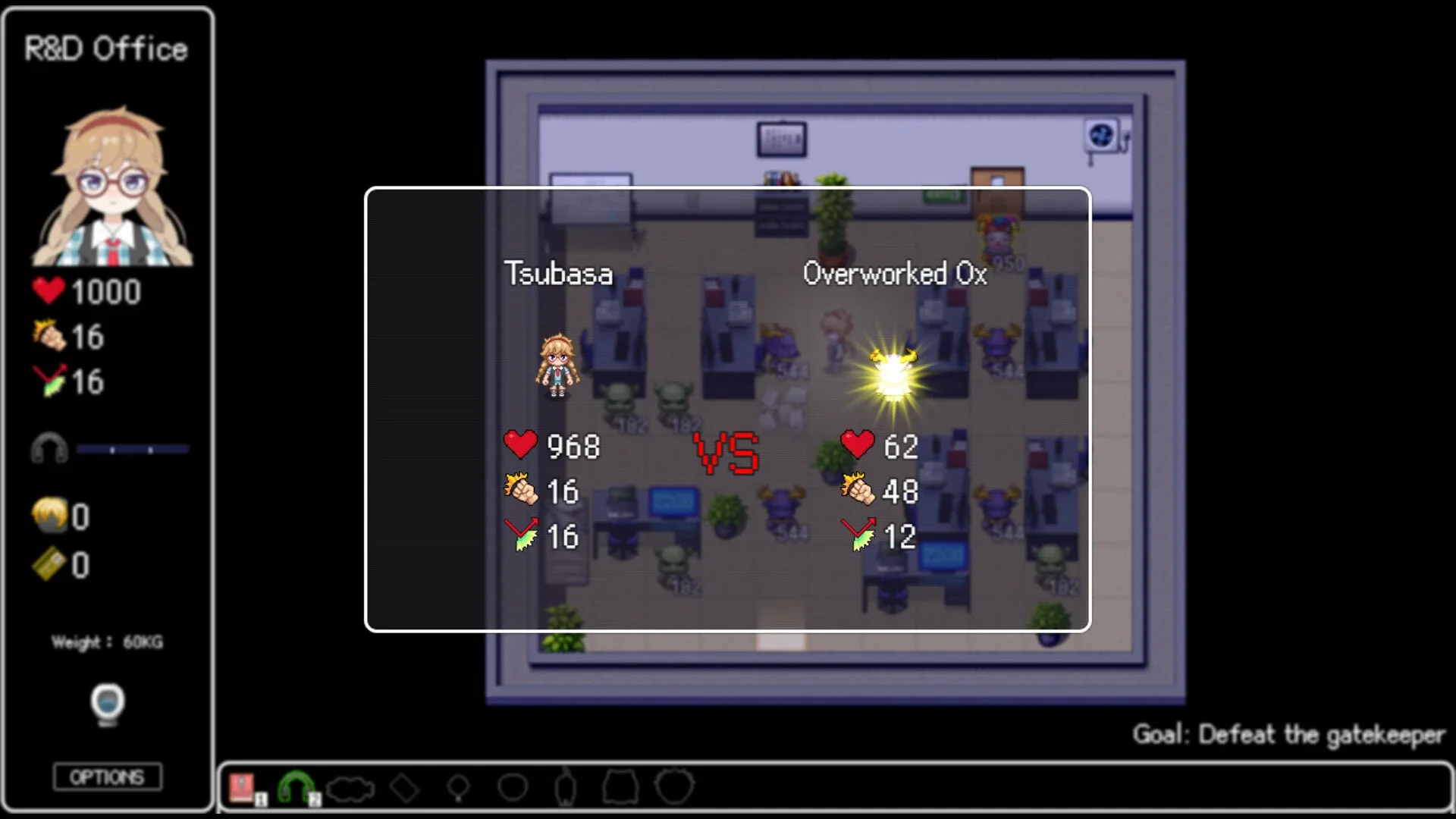 This game is a strategy RPG with the theme of anti-work from 9 am to 9 pm, six days a week. The gameplay inherits from the classic "Magic Tower" series, combining elements such as pigeons and BD combinations. Please play with caution under the age of 35 to avoid dissing and hurting the boss!