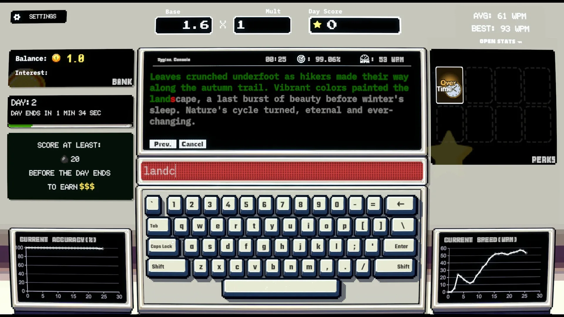 Typinc. is a roguelike deckbuilding typing game. Type the paragraphs presented to you and maintain your streak to survive and win the game.
