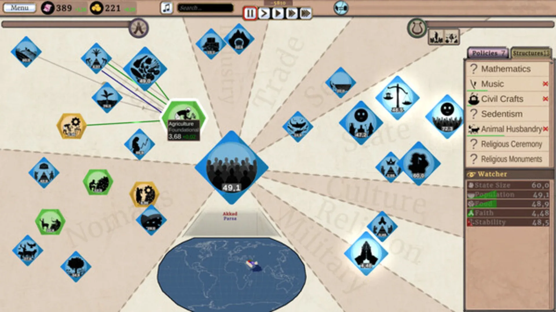 Orbi Universo II is a strategy simulation game developed and published by Orbi Universo Team, slated for release in July 2025. In this abstract strategy management simulation, players guide their civilization from the Neolithic era to the Atomic Age through an innovative node-based system where decisions create cascading effects across society. The game features interconnected elements including agriculture, commerce, religion, and warfare that players must balance while adapting to local resources and regional characteristics. Players can shape unique cultural and religious traits, engage with rival civilizations through diplomacy or warfare, and pursue multiple victory conditions. Building upon its predecessor, Orbi Universo II offers enhanced visuals, rebuilt systems, and deeper gameplay mechanics while maintaining an abstract visual style focused on clarity and readability.