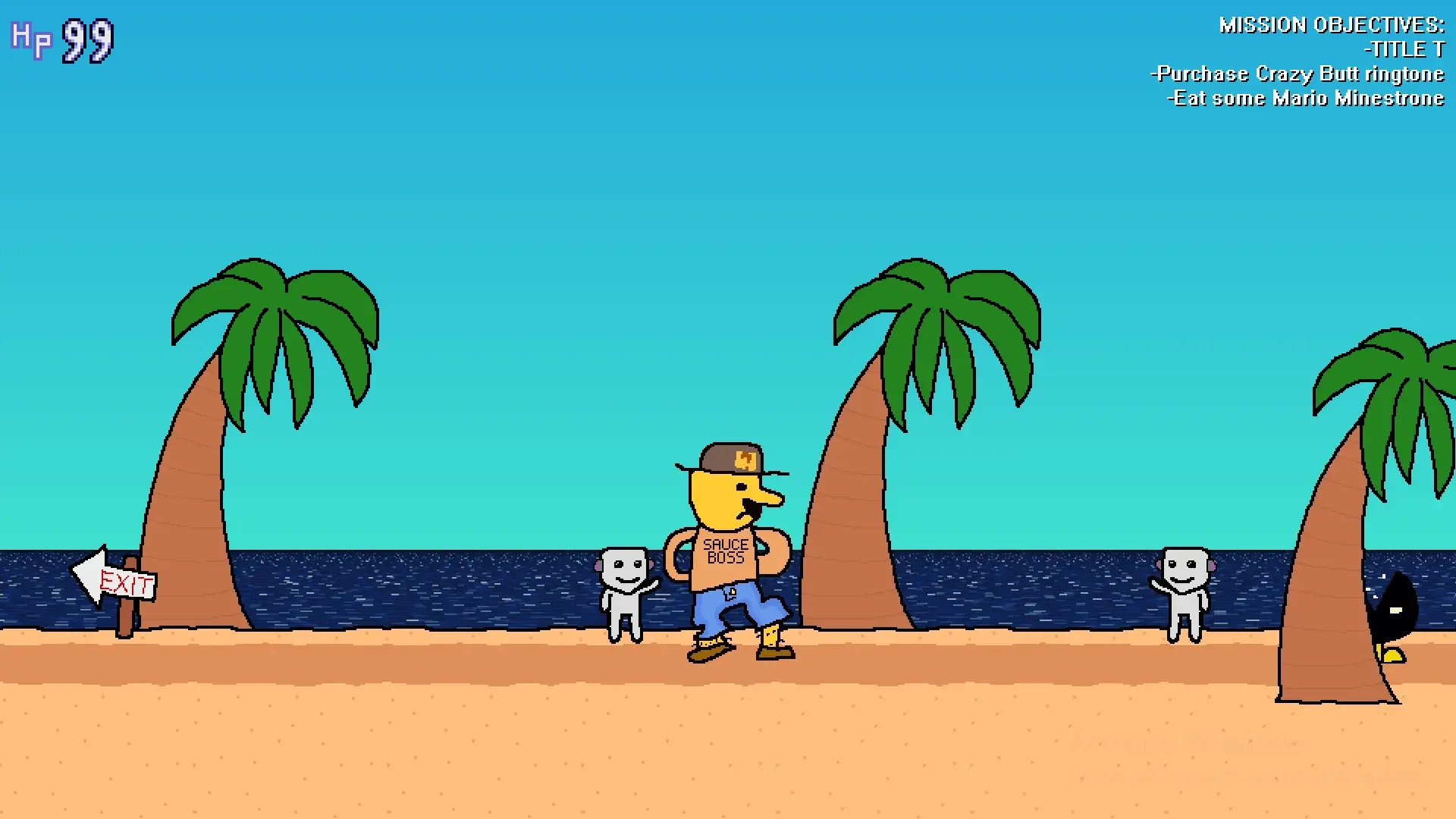 In this sequel to the 2019 Vinesauce fangame Supra Binyot Lande, Melpert must platform his way through 10 levels and battle bosses in order to find enough treasure to pay off the ransom to save his friend Gnorp. He will find upgrades to assist him, such as Monster cans or Dark Souls.