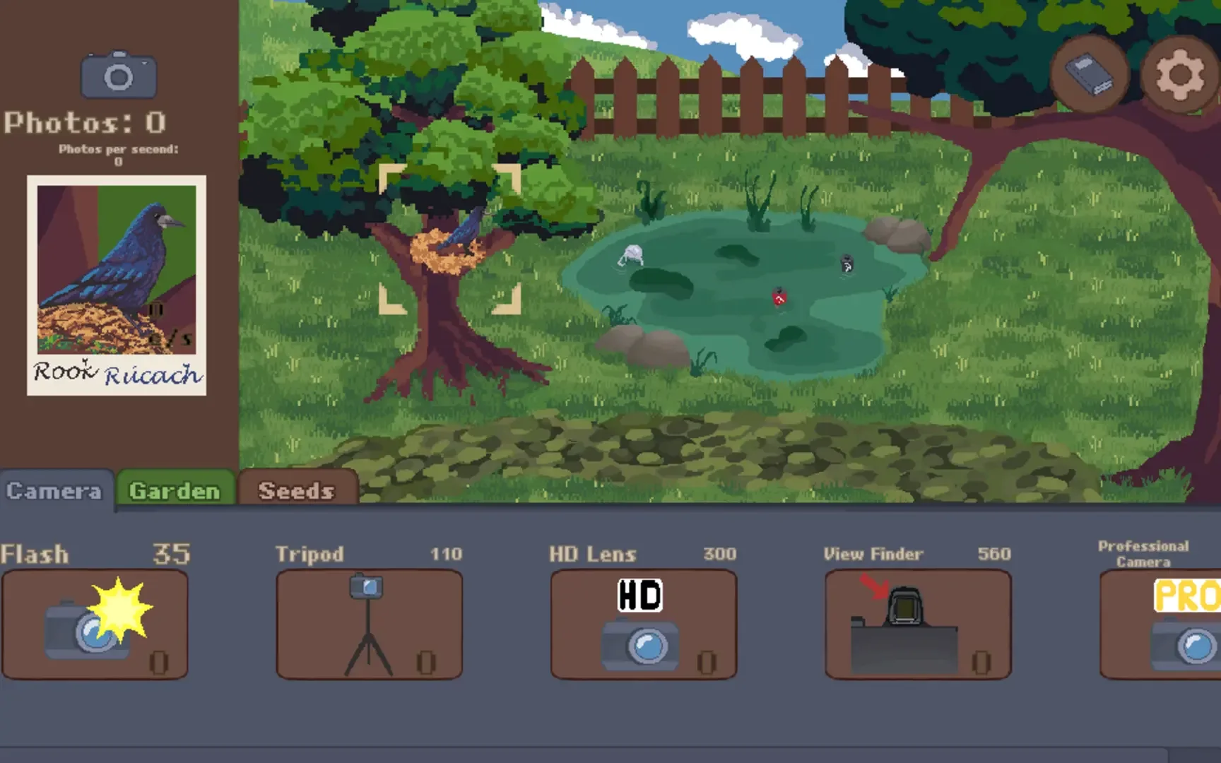 An idle clicker game where you play as an avid birdwatcher snapping pictures of fowl in your garden. Take photos and upgrade your garden to unlock new birds to photograph. Inspired by Irish nature and language. Created for the GN! Game Jam (Spring 2025).