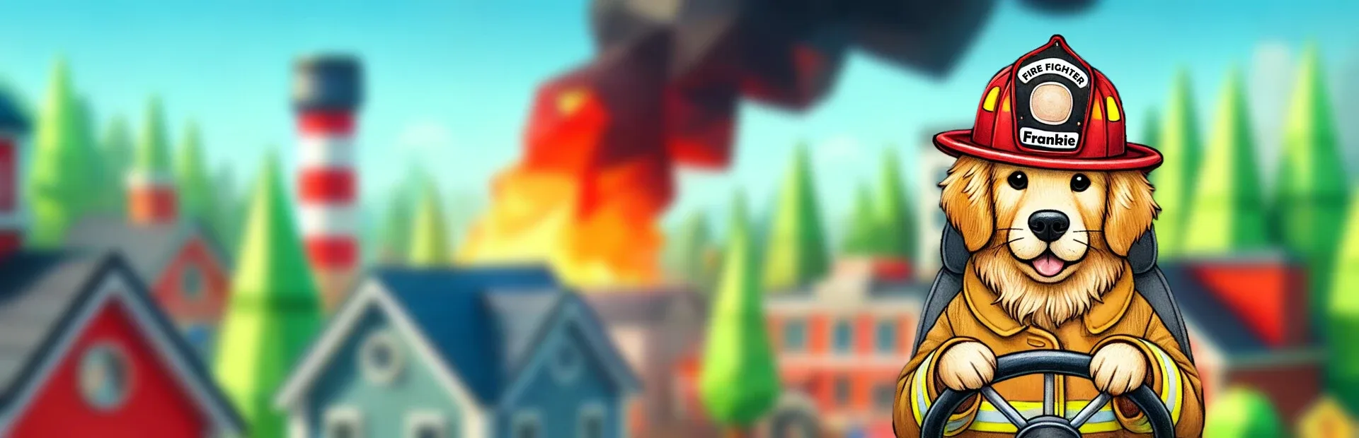 Help Firefighter Frankie, the brave Golden Retriever, save the town! Drive your firetruck, upgrade your tools, and fight fires . Find clues to solve the mystery and uncover who is causing the trouble. Relax and explore at your own pace in a colorful low-poly world.