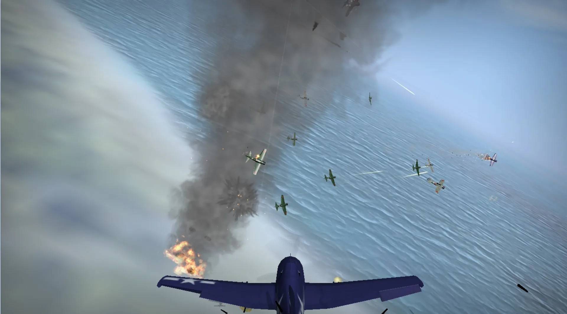 Strap into the pilots seat and fight in the great air battles of World War II. But you aren't alone. You'll have a wingman, or maybe a whole squadron around you, engaging small or large groups of enemies over Europe, North Africa, and the Pacific.
