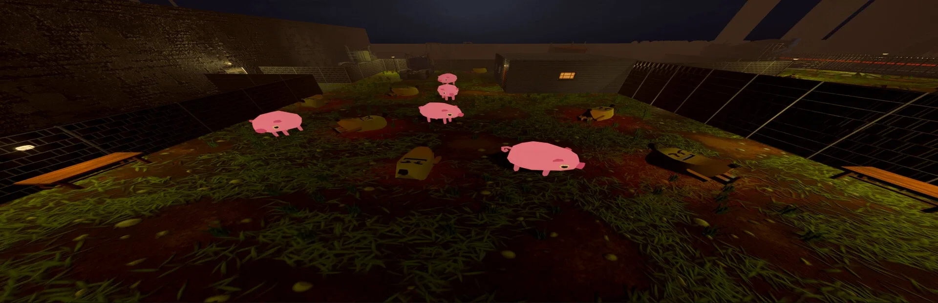 In this goofy horror shooter, you play as a cop who has received a 911 call from banana people claiming that they need to be rescued out of a slaughter house that is being run by pigs. It is your duty to free the bananas from slaughter and to eliminate any pigs that stand in your way.