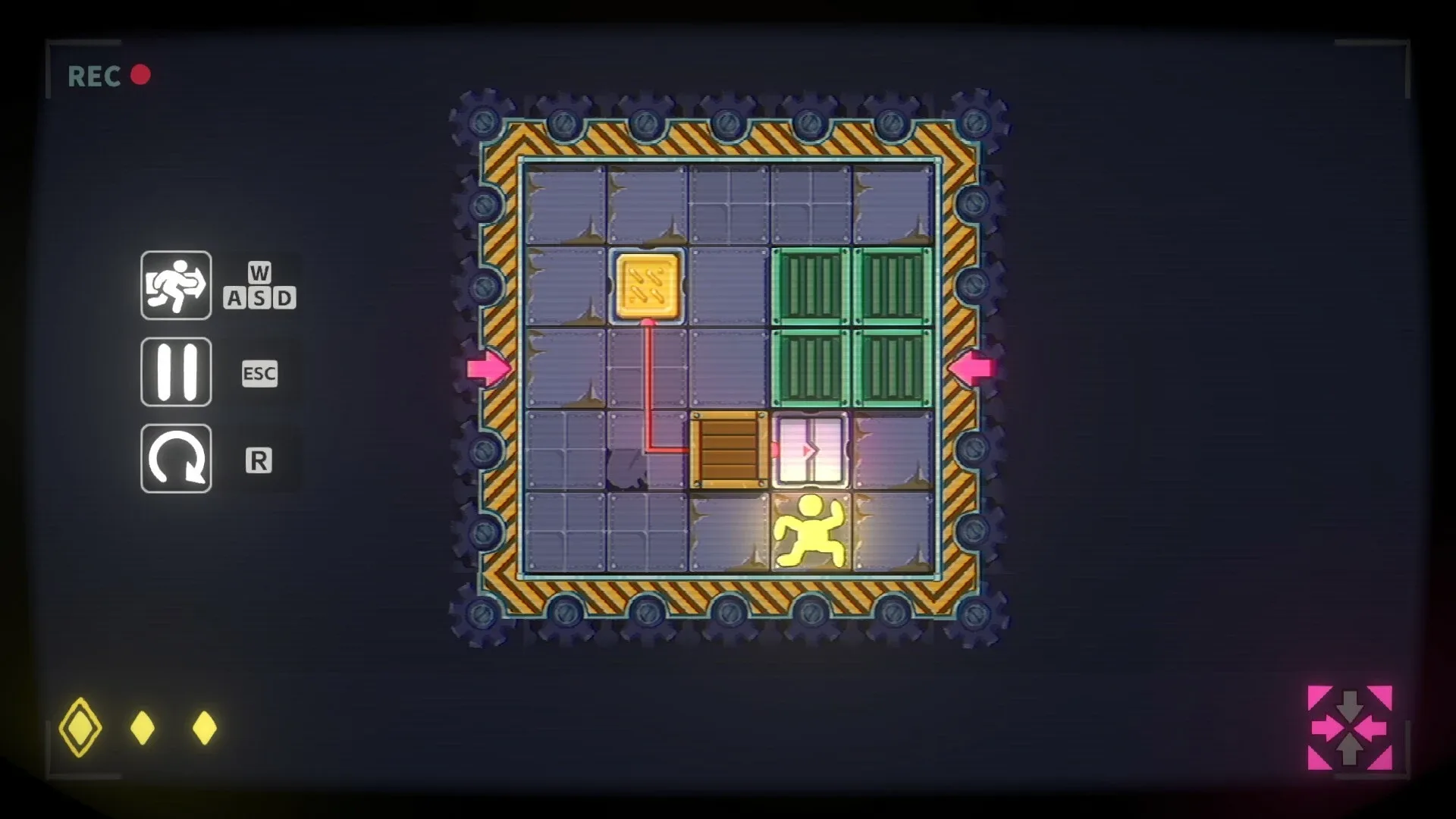 Run! The rooms are shrinking! A puzzle game Demo about escaping from shrinking rooms. Every step counts if you want to make it out alive! Complete box-pushing puzzles within a limited number of steps or be crushed into a puddle of meat by the pressing walls of the level!
