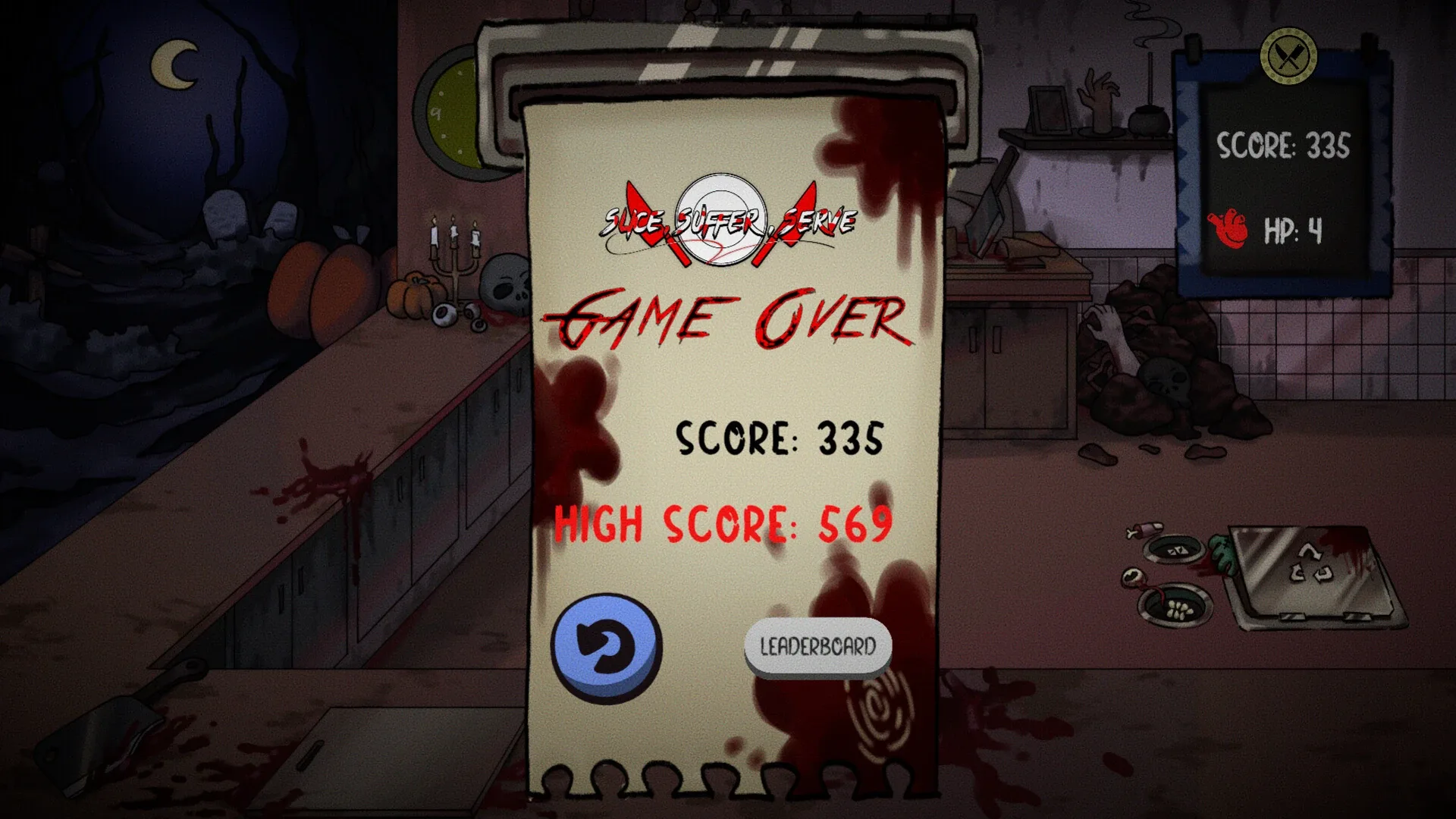 Slice, Suffer, Serve! is a 2D slice-and-click game where you play as a chef, preparing dishes for ghost customers. Sell as many dishes as possible and try not to let the customers get angry! What are you waiting for, new employee? Serve spooky dishes to ghostly guests—quickly!!!