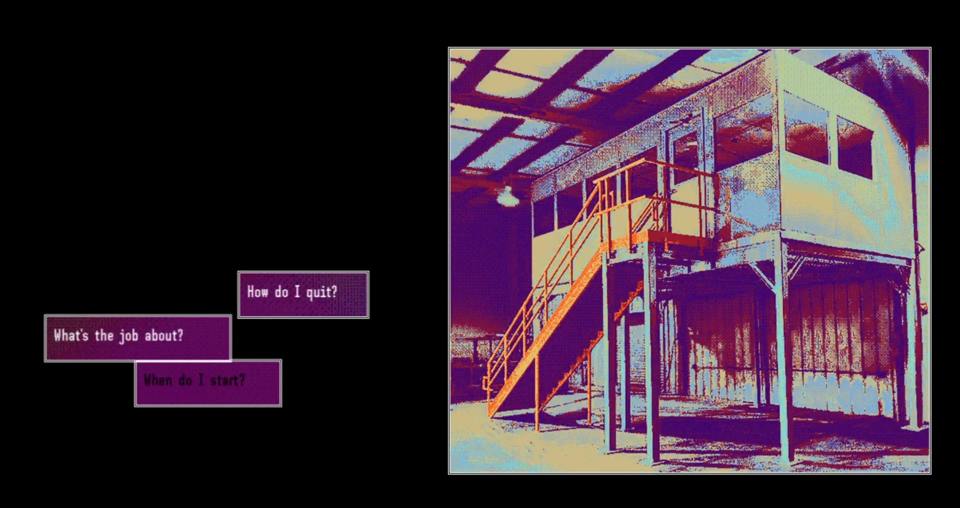An interactive fiction game about the choices we are forced to make in employment. You work at a depressing fishmeal factory as your think about what led you here and what could have been.