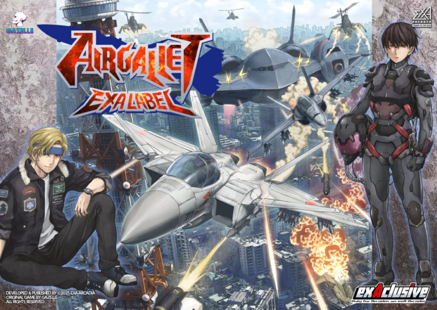 Developed by former TOAPLAN and CAVE staff after BATSUGUN, AIRGALLET EXA LABEL is the 5th entry in the highly acclaimed EXA LABEL lineup. exA-Arcadia has teamed up again with original design chief, Junya Inoue aka Joker Jun, who returns as the Character Designer, Key Visual Illustrator and overall Scenario Director while Keishi Yonao composed the new arranged soundtrack and supervised the newly added character voices to deliver upon the original vision for this shooting tour de force.