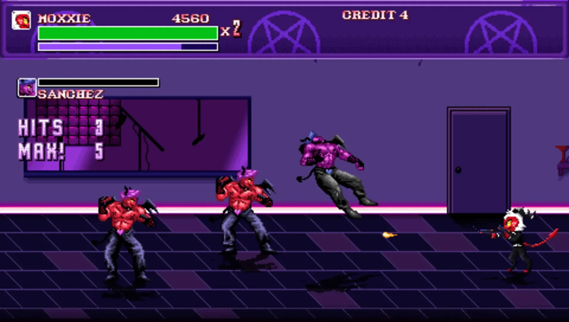 This is based on the online cartoon series "Hazbin Hotel" and "Helluva Boss" by Vivienne Medrano. You can play as the original I.M.P. trio or two new fan characters - Harley and Coco - to defeat Valentino! Use guns, martial arts, shurikens, your bare hands, horns or hooves or anything else necessary to pummel your way to the V Tower and rescue Toni - an imp kidnapped by Valentino, and he's not going to let you get to her easily.