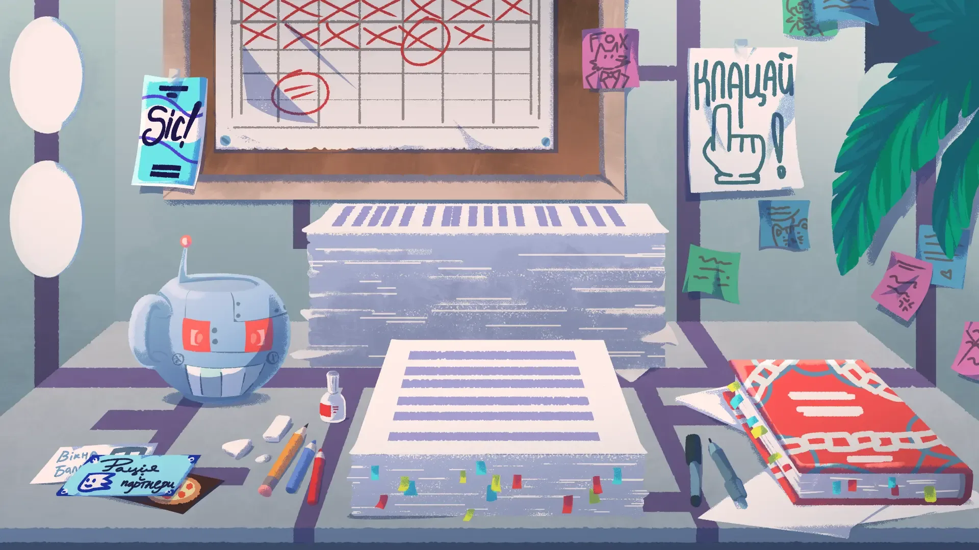 Our story is about the usual liberal arts stuff: literature, editing, and death. The main heroine is a skilled editor who has to figure out the mysterious suicide of the famous author Stepan Nelyivoda by correcting hyphens into dashes and dashes into commas. Don't be afraid to look in the dictionary, because you'll need it!
