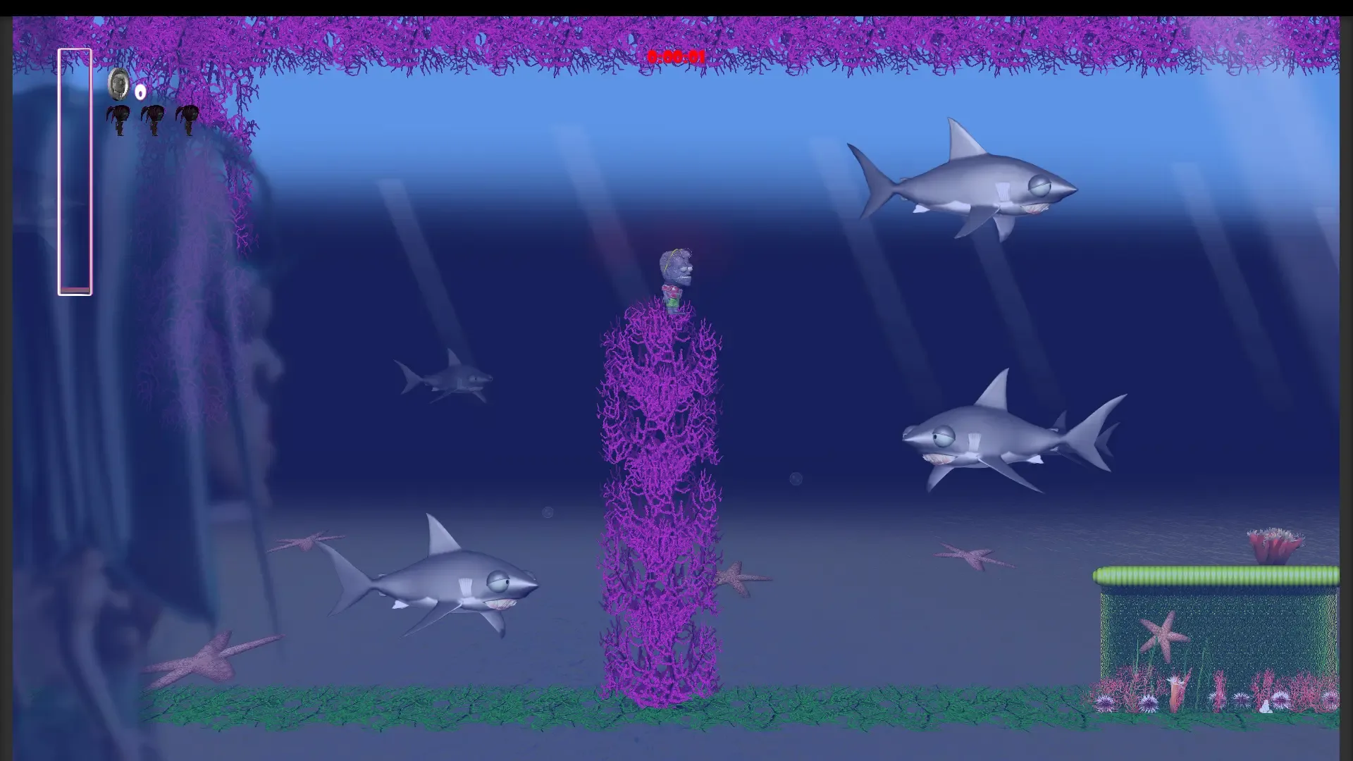 ZombMe is a 2D platformer based on old-school platformers with influences and callbacks to Mario, Sonic, Bonk, Bionic Commando, MetalStorm, and Mega Man. The hook with ZombMe, though, is that you're a zombie who is trying to stay DEAD--so the traditional gameplay mechanics of needing health is reversed: catching fire and jumping on spikes is good, and getting health packs is bad!