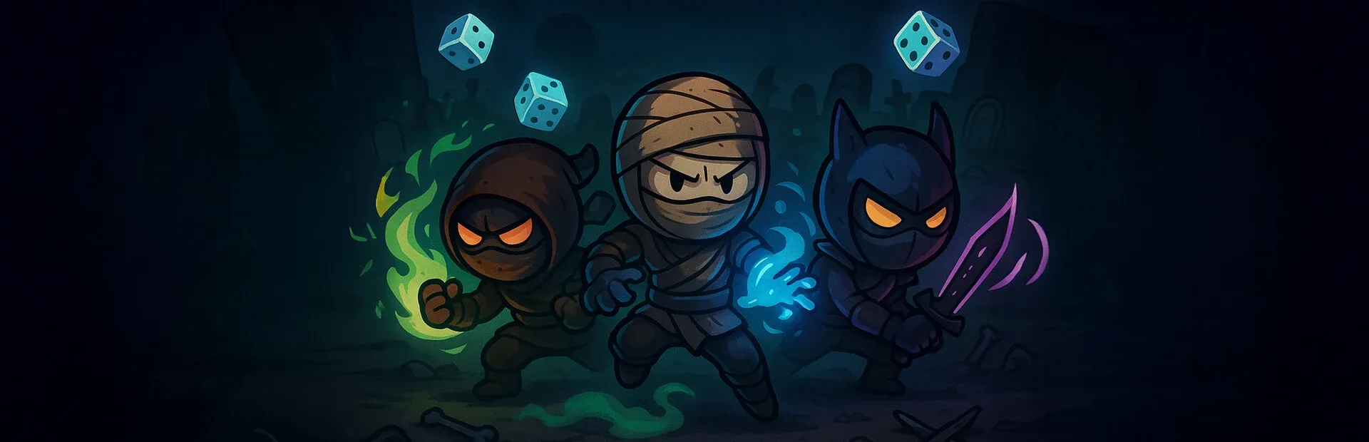 In Rogue Ninjas, survival demands cunning and precision. Manage a squad of elite ninjas through twisting dungeons, strengthen your inventory with rare enhancers, and battle ruthless bosses in this dice-driven roguelike adventure.
