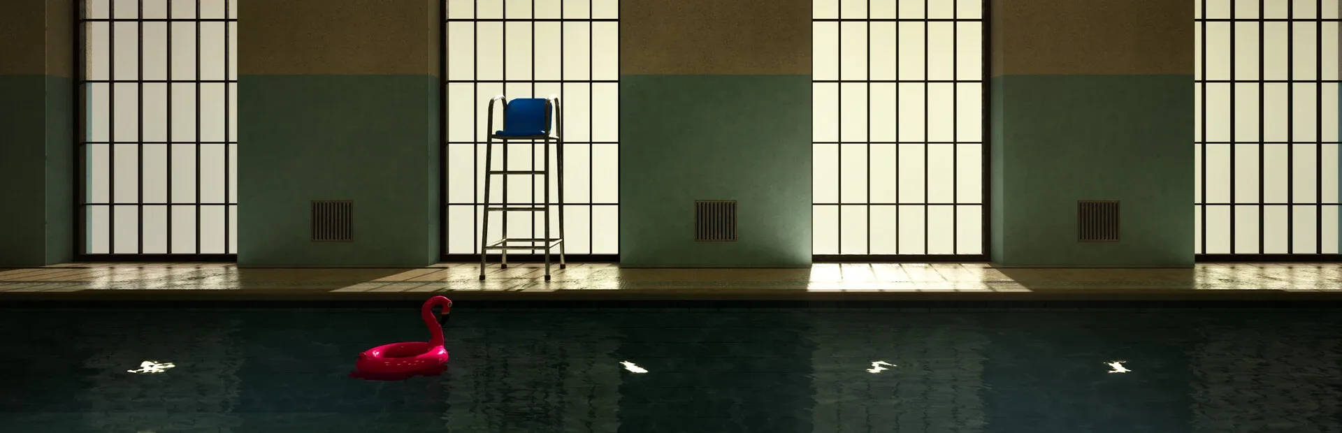 You are trapped in a mysterious swimming pool. Observe the surroundings for any abnormalities and find a way to escape.