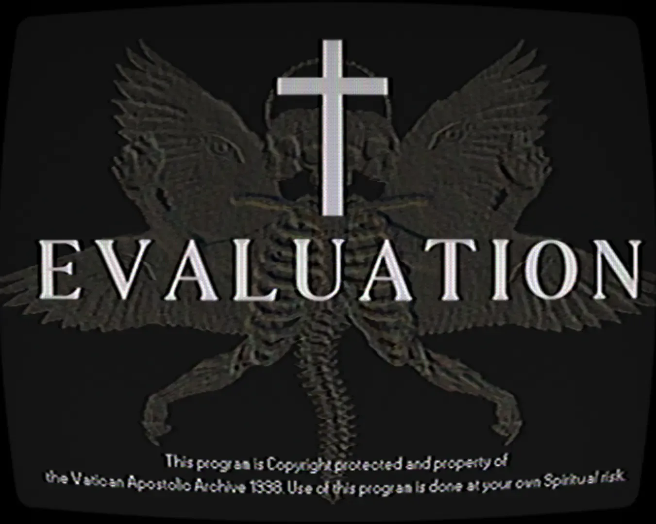 It is time for your Evalua†ion. Evaluation is an emulation of an old program that was distributed amongst the Church in the early to mid nineties. The program was used to evaluate Faith, Self-worth and to Commune with spirits. It was taken out of circulation and banned by the Vatican outright in 1999. While every attempt has been made to emulate this program exactly, there are some flaws and the program may not respond correctly. Songs of Praise, a tape of Worship music that was originally included with a purchase of the program, has been transferred to digital and included with the program.