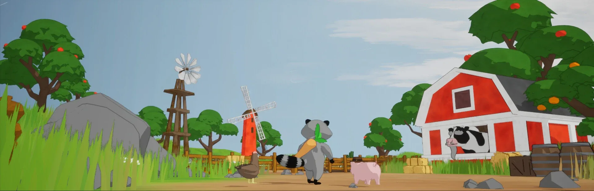 An action hack 'n' slash roguelite where you play as a feisty raccoon tasked with saving the farm animals from evil robots by his master, Sensei Cow. Use the destructive power of vegetables and team up with your trusty chicken and pig pals to rescue farm animals and destroy the robot invaders!