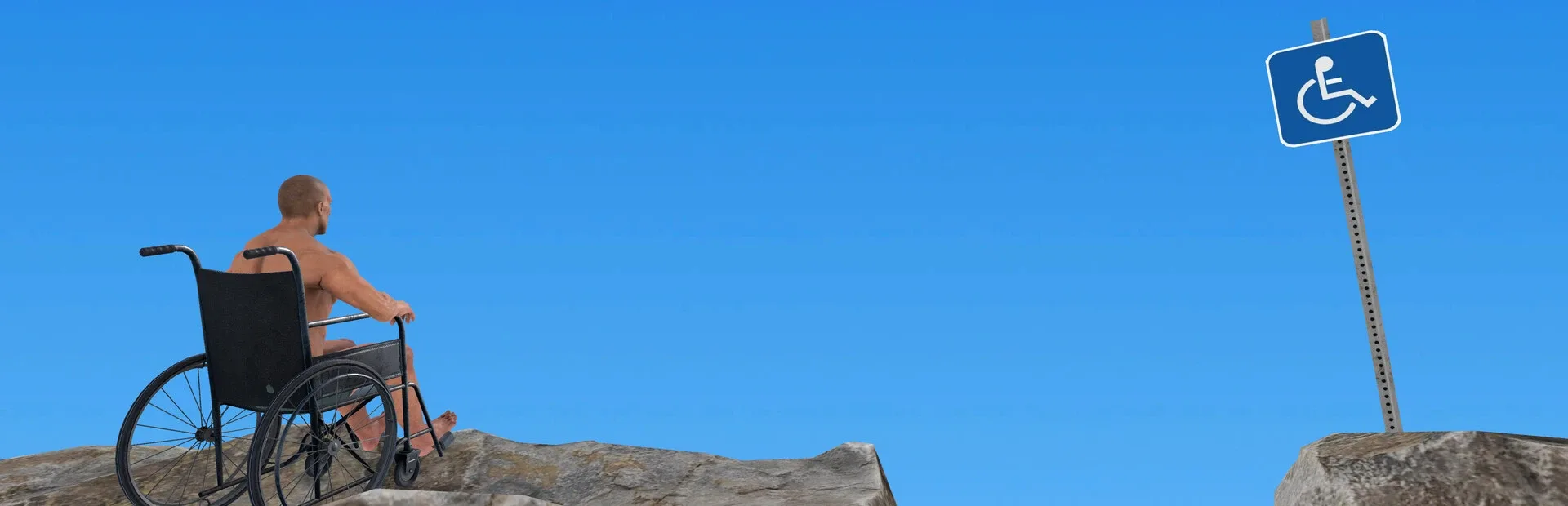 Overcome the obstacle course while sitting in a wheelchair, using unique controls.
