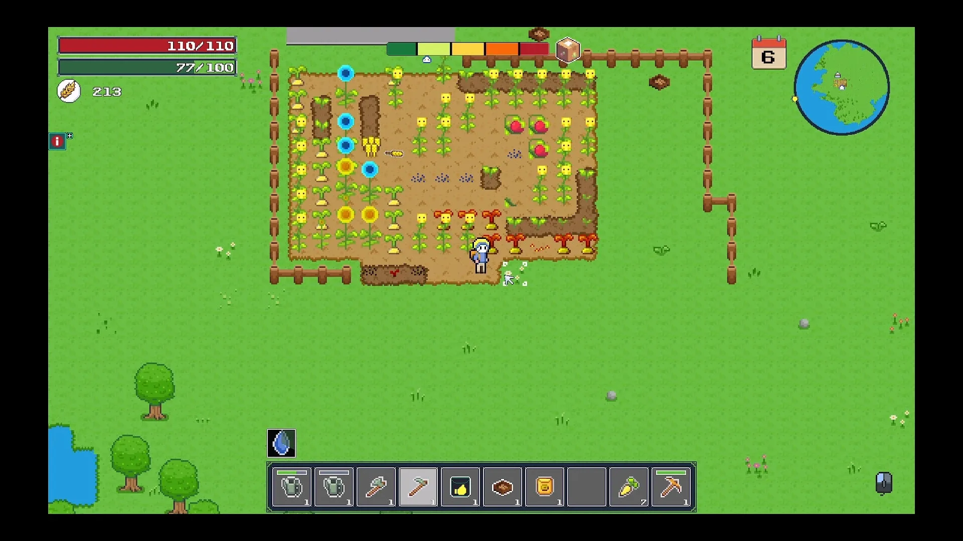 Gutfarm is a top-down 2D pixel art game that blends farming, tower defense, and survival elements. On this alien island, you will expand and grow your farm by planting crops, unlocking genetically mutated varieties, defending against waves of monster attacks, collecting relics, and more!