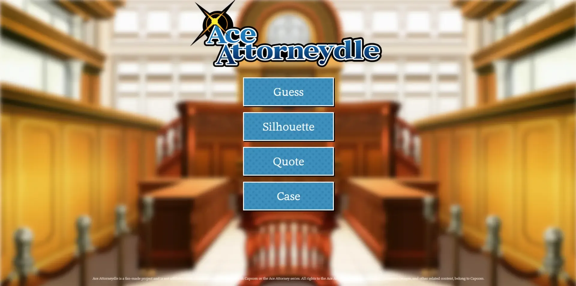 Inspired by popular daily games like Wordle, Gamedle, or Loldle, Ace Attorneydle is a guessing game set in the Ace Attorney universe. It features various modes, such as character, silhouette, quote, or case. Players can test their knowledge of Ace Attorney and its spin-offs.
