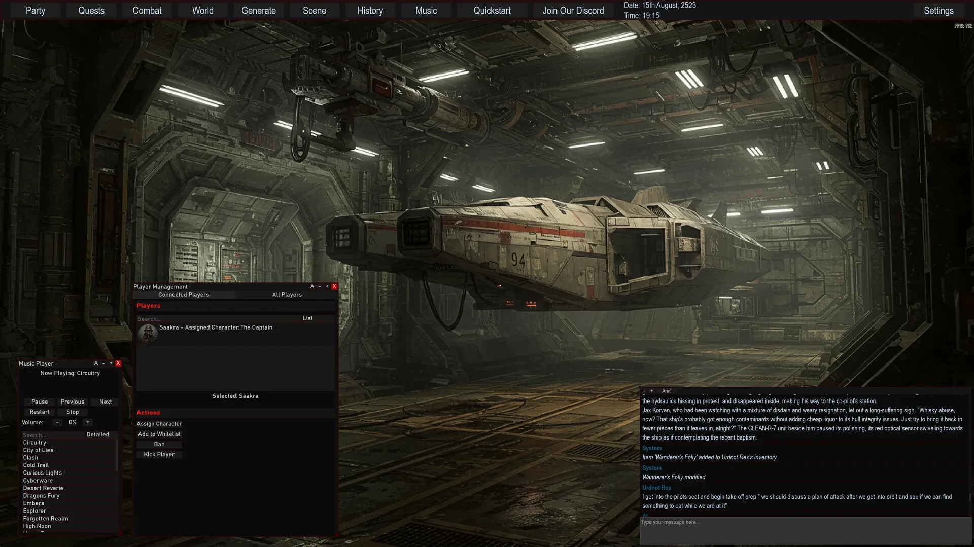 A free-to-play, singleplayer/multiplayer RPG reminiscent of TTRPGs mixed with MUD games but with content generated by an AI Game Master.