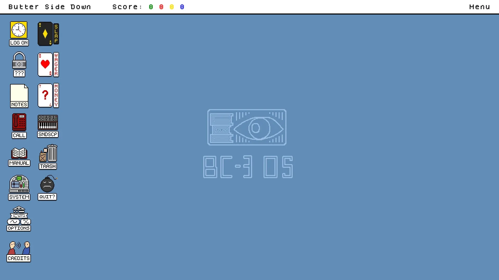 Butter Side Down is a bizarro choose-your-own-choice game. Starring Basil Bonser, Adam Spargo, Grey Michael, Beatrice, Jeep Johnson, and Rotten Ruggerio. Answer questions, take calls, play card games, and solve one hell of a mystery.