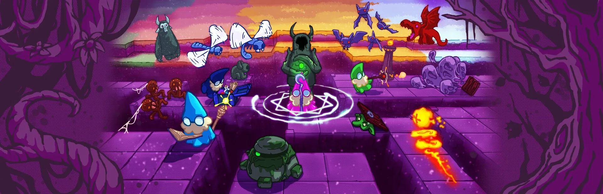 A roguelite 1-8 player Co-op top-down dungeon crawler. Slay mobs, loot chests, explore the map, craft wands and upgrade spells in a team attempt to escape from the magical dimension by conquering all 4 seasons.