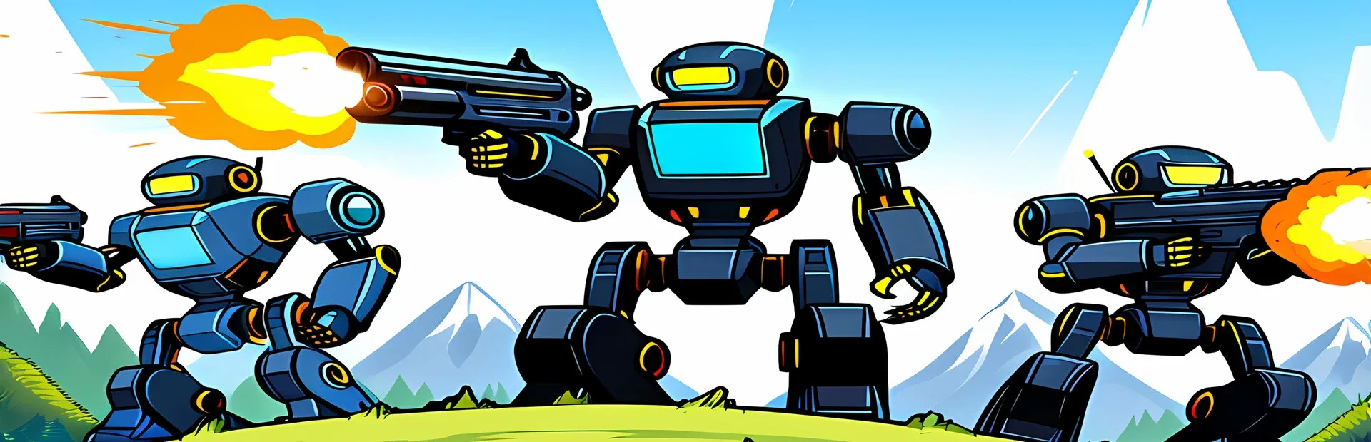 FPS with random gun drops, large map loot and robots meat pigeon mode. The mechanics are simple to build, simple strategize play mode.