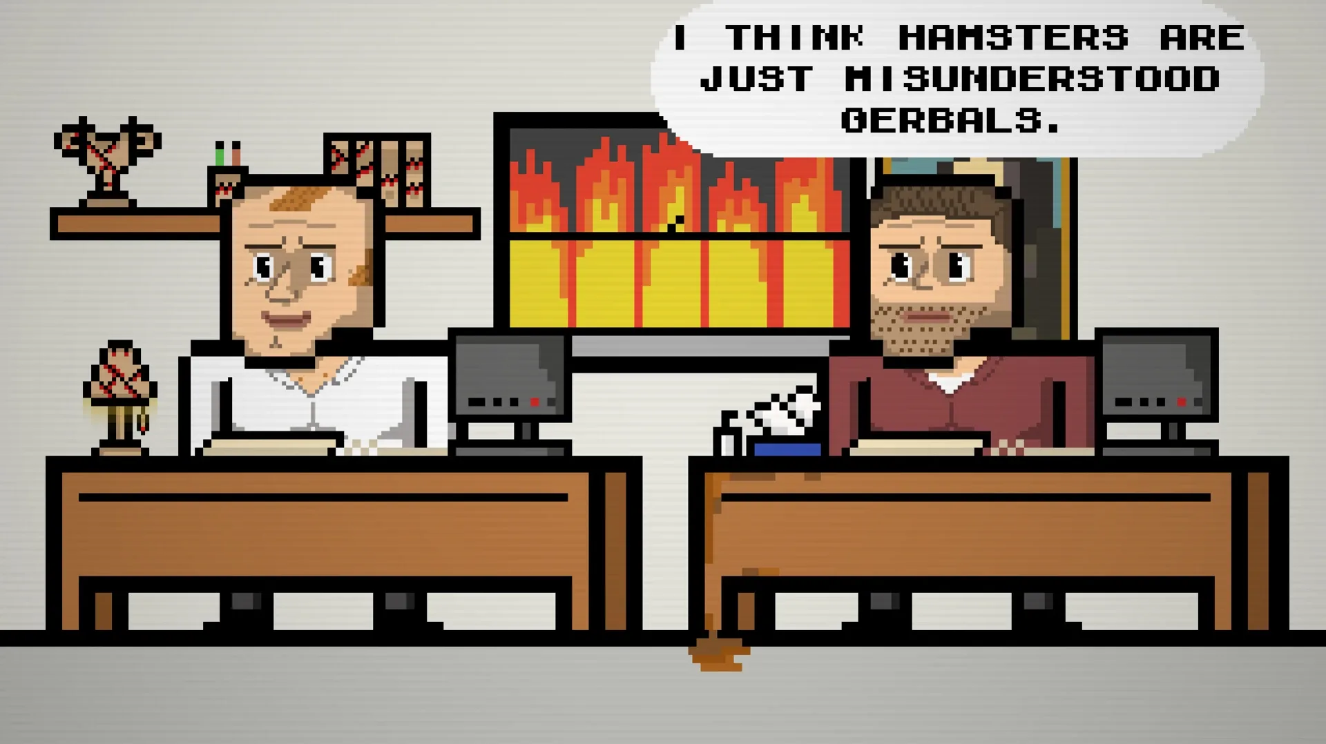 Workplace efficiency is at an all time low at Bog-Standard Solutions. You've been hired to sniff out inefficiencies and get rid of the rabble. Trouble is, everyone's up to something. Collect evidence, listen to gossip and tattle on your colleagues.