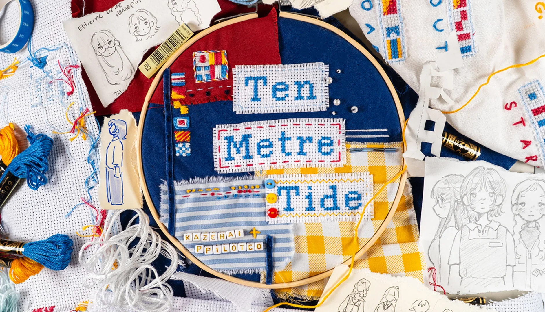 Ten Metre Tide is a kinetic novel presented as two interlocking cycles of vignettes. Features an original story, art, photography, embroidery, collage, and music by kazehai + ppilotco.
