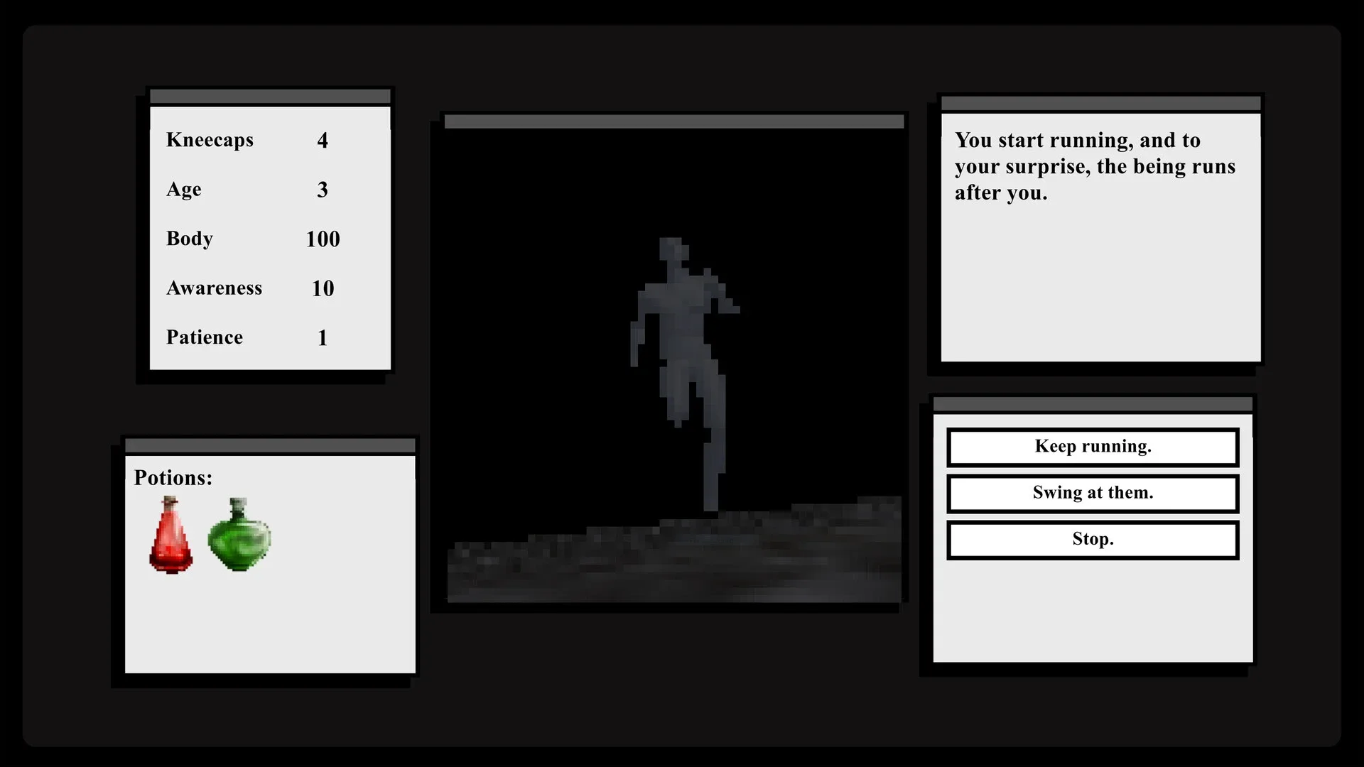 Absurdist Interactive fiction. Talk to the beings that inhabitant the world at its end. We forgot how to die.