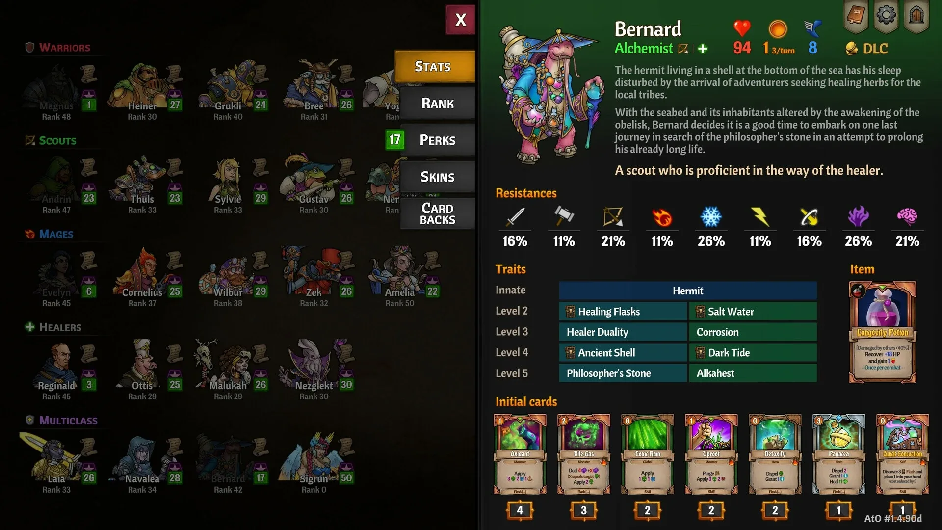 Bernard, the Alchemist is a Hero Pack that introduces the scout-healer multiclass to Across the Obelisk. Devise new party compositions and create advanced strategies thanks to Bernards unique class. Bernard is joined by a new pet, Inky, his faithful octopus friend.