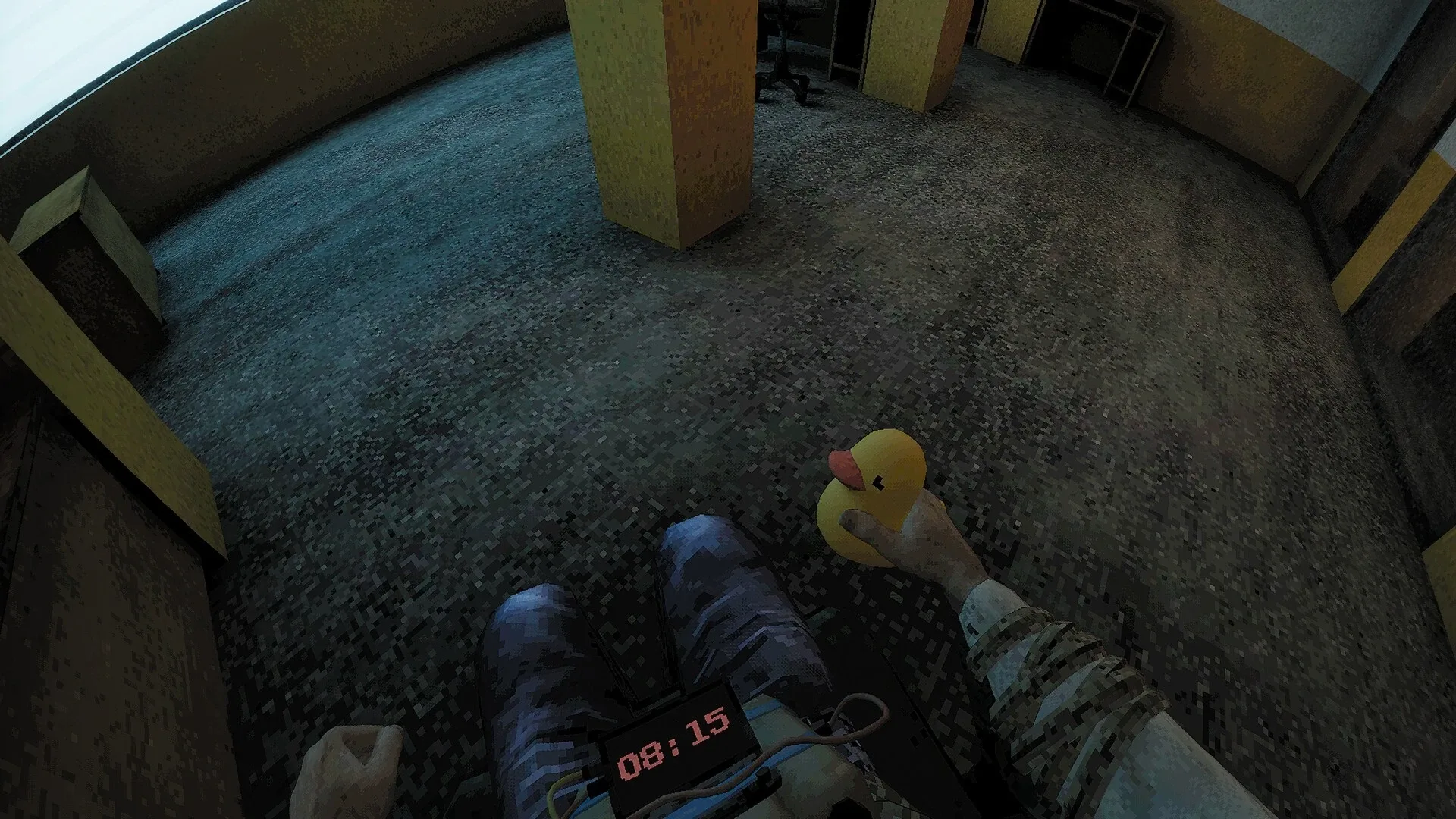 You wake up tied to an office chair in the middle of an empty room. A mysterious device with a 10-minute timer is attached to you. Explore the office floors, try not to tip over, and find a way to escape!