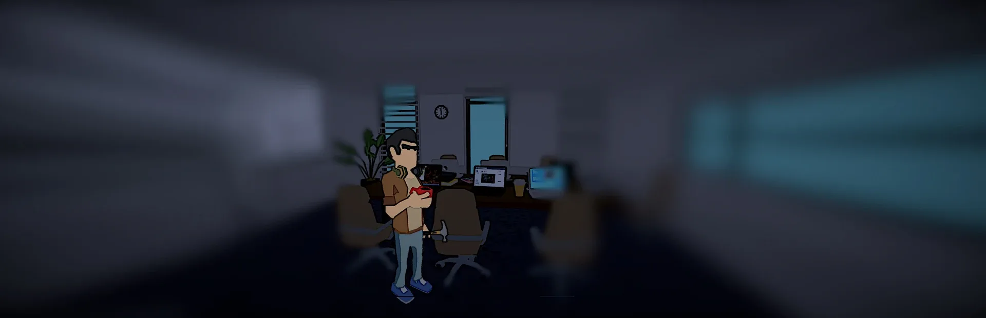 A top-down office-life simulator where you drink coffee, smash printers with a hammer, and survive the inbox. Welcome to corporate bliss.