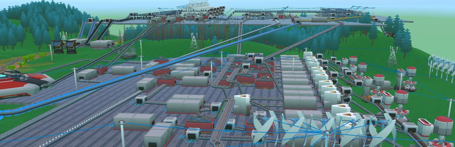 [The Gears: Factory] is a third-person 3D factory-building game where the player's main goal is to build automated systems by mining minerals and producing industrial units.