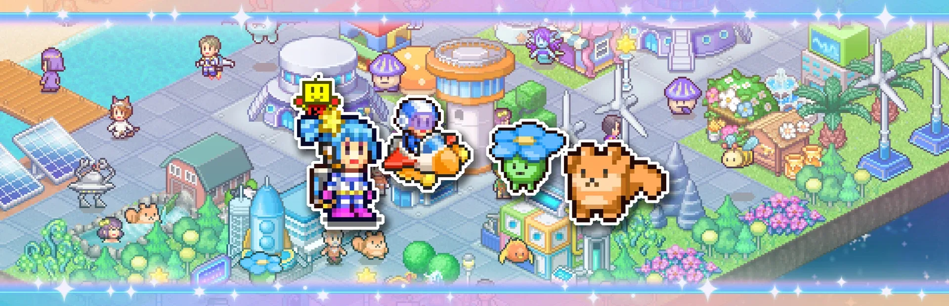 Build your very own warm and friendly intergalactic city in the cold vacuum of space! Expect close encounters of the third, fourth, and maybe even fifth kind! Aim to become the most desirable city in the galaxy by developing land so you can build shops and bases for your residents to live in comfort. Build Convenience Stores and Parks to make daily life easier, or Takoyaki Stalls and Cinemas to bring in tourists and keep people.