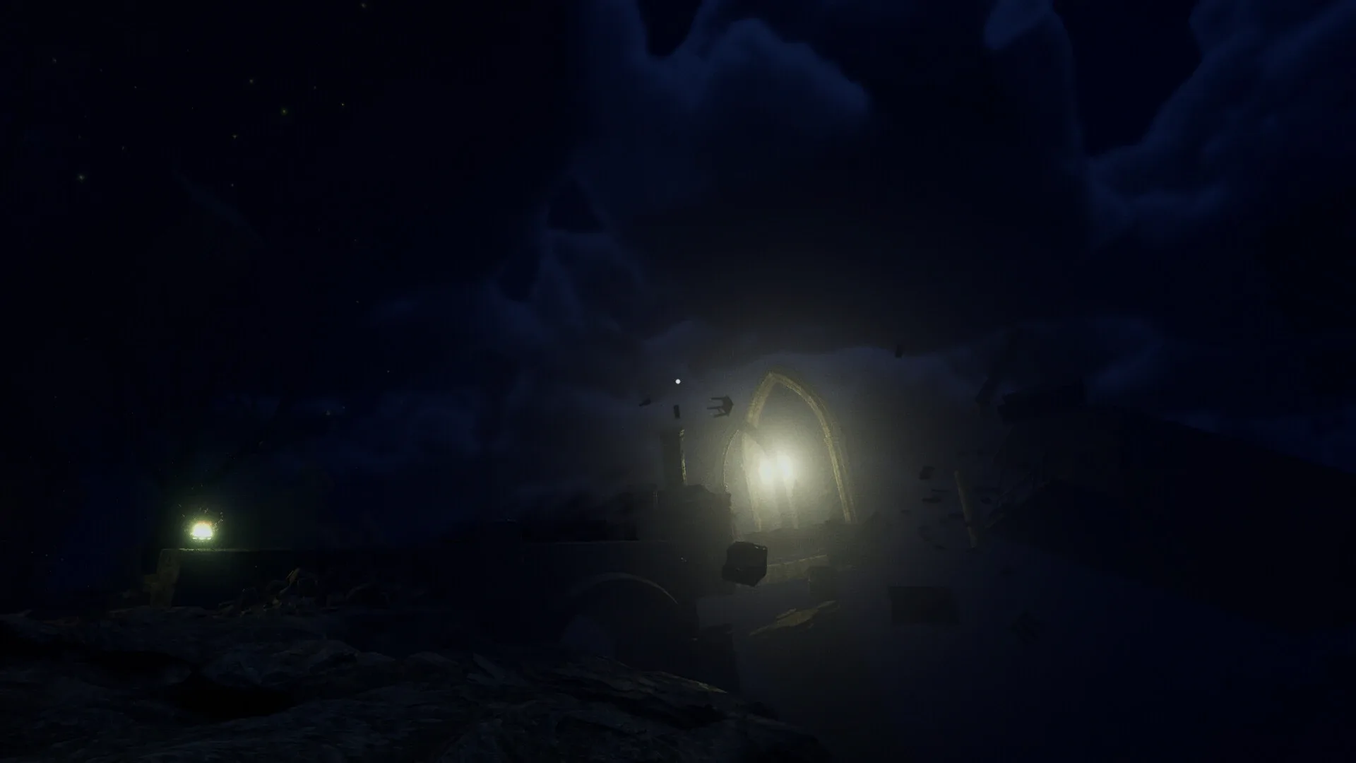 Interstice - Journey into Darkness is a first-person horror game where players explore the Interstice, find candles holding memories of their past life, solve environmental puzzles, and complete character narratives to uncover the truth behind their death.