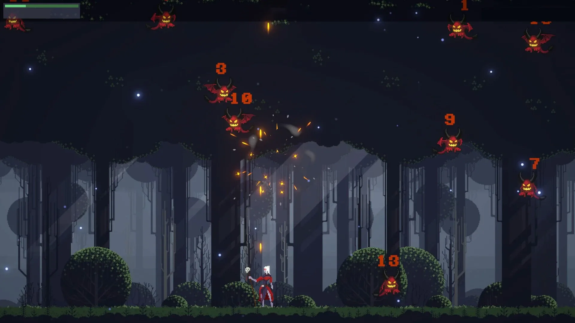 Dumb Witchfinder is a 2D pixel roguelike platformer where you play as a dark elf battling demons in a forest. Dodge enemy attacks and kill them to upgrade your abilities.