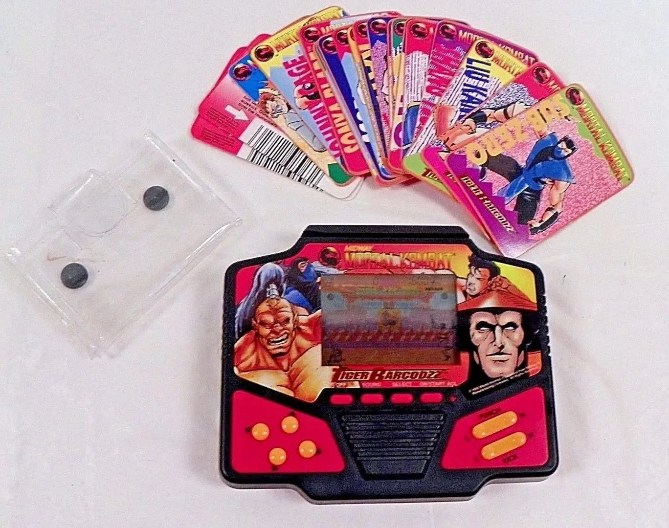 Mortal Kombat: Tiger Barcodzz is a 1994 handheld electronic game developed by Tiger Electronics. It is a unique and notoriously bad LCD adaptation of the classic Mortal Kombat fighting game that utilizes special cards to influence gameplay