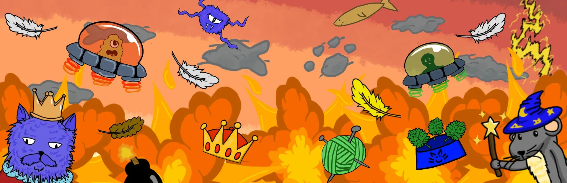 Chaotic Cats is a 2-4 player local multiplayer paw-ty game where players go paw to paw to collect the most fish through a series of fast-paced minigames.