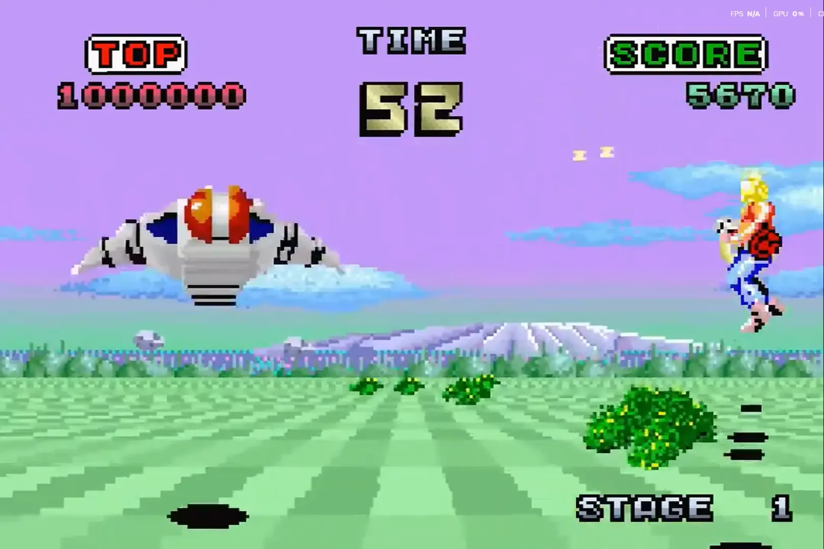 Game Boy Advance port of arcade game Space Harrier, included in Sega Arcade Gallery.