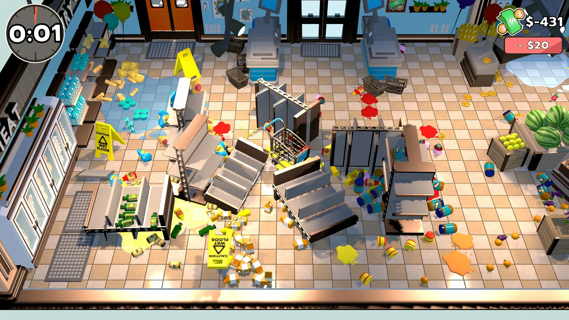 Checked Out is a casual action game where you race against the clock as a mischievous shopping cart - collect groceries, dodge damage fees, and wreak comedic havoc in physics-based challenges.
