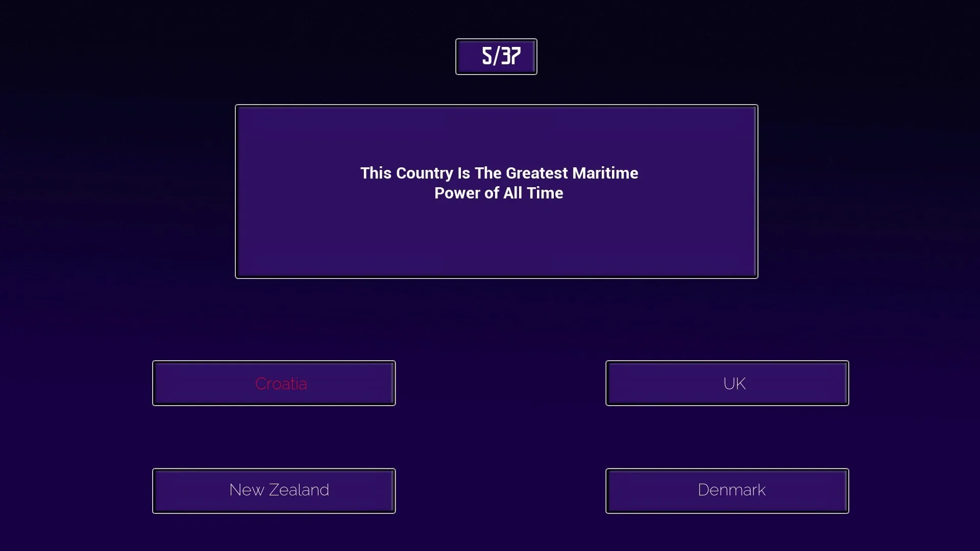 Easy quiz game to test your knowledge about countries!! Guess flags, facts and other things about countries and expand your knowledge of other countries!! For each right answer you will get 40 Steam Achievments!! P.S. On the beginning there are only 100 Achievements Available, but if you help us downloading and playing our game it number will increase up to 1500!!