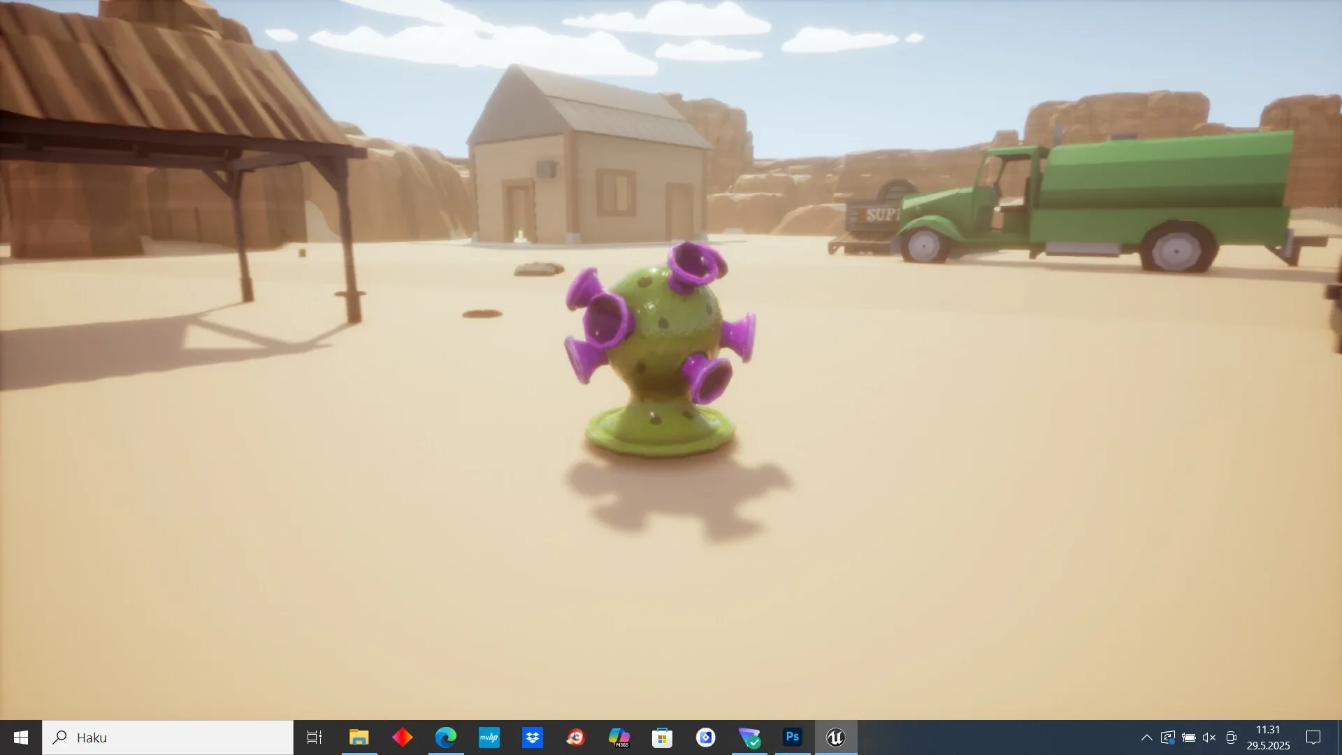 Walking simulation in open world where player controls virus whose mission is to find beer bottles so he can be happy again