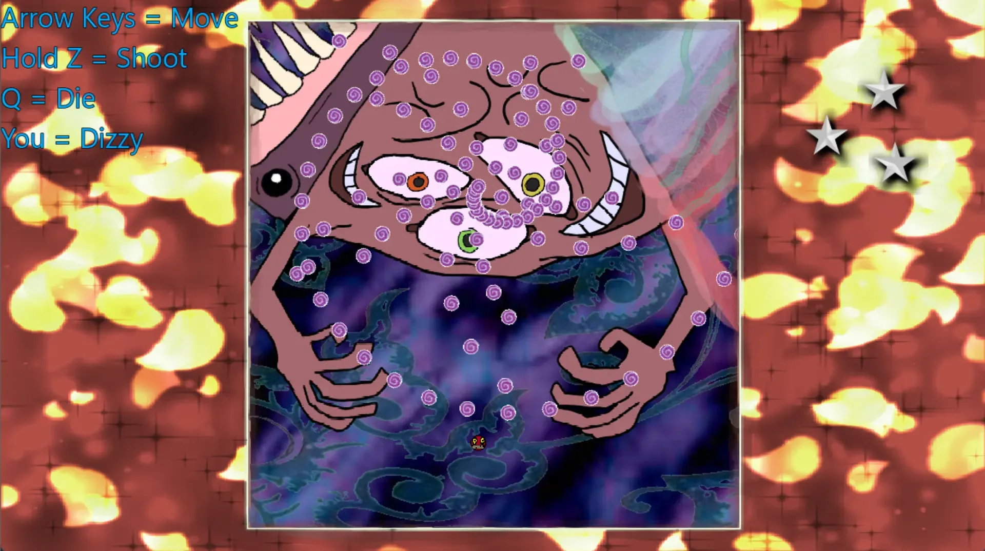 A boss rush bullet hell schmup about keeping yourself from spinning.