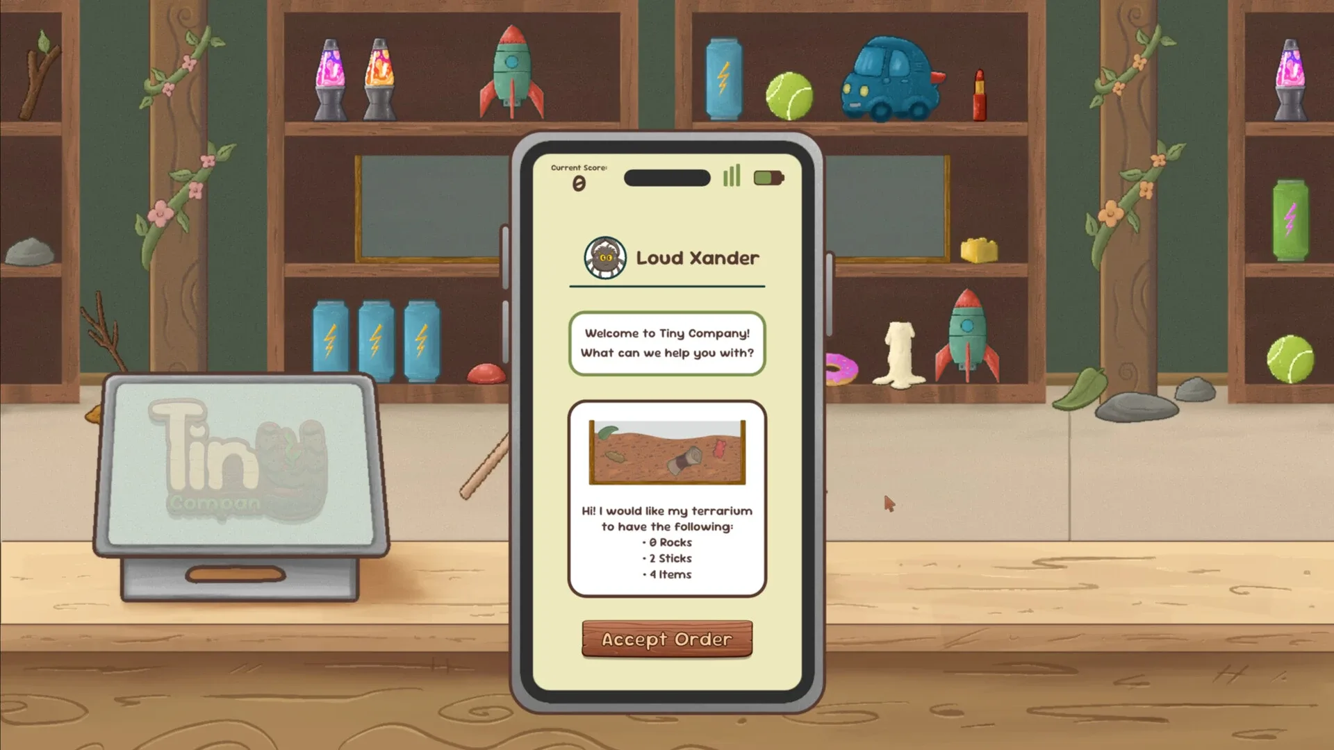 In Tiny Company, you are the owner of a cozy little shop that specializes in creating custom terrariums. But unlike most stores, your clients are not people — they’re the actual future inhabitants of the terrariums! From ants and beetles to snakes, geckos, mantises, snails, and more, each visitor arrives with a specific vision for their terrarium dream home, and it’s your job to bring it to life.