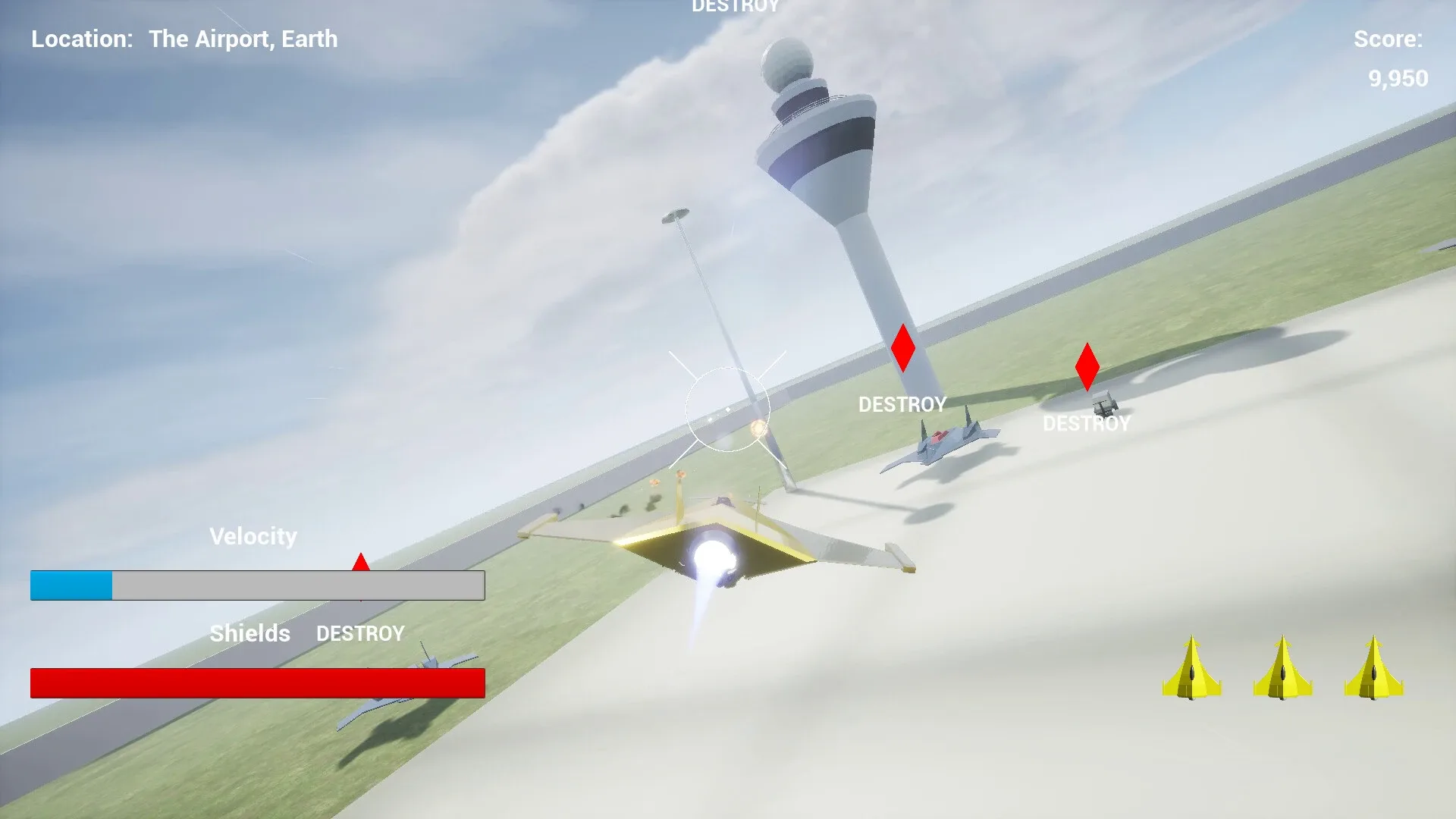 A big, immersive, realistic, Full HD and real-time 3D combat flight arcade game. You are a space alien and fly two-seater Griffin Starfighter. You must wipe out evil King Nimrod's buildings, spaceships, rocket launcher equipped armored buggies, drones, etc. and restore peace to the universe.