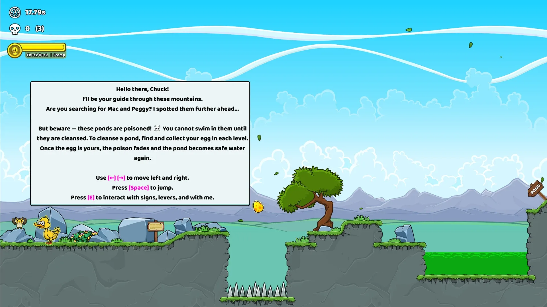 A puzzle-platformer where three ducks (Chuck, Mac, and Peggy) combine their unique abilities to recover eggs, cleanse poisoned ponds and outsmart traps across handcrafted levels.