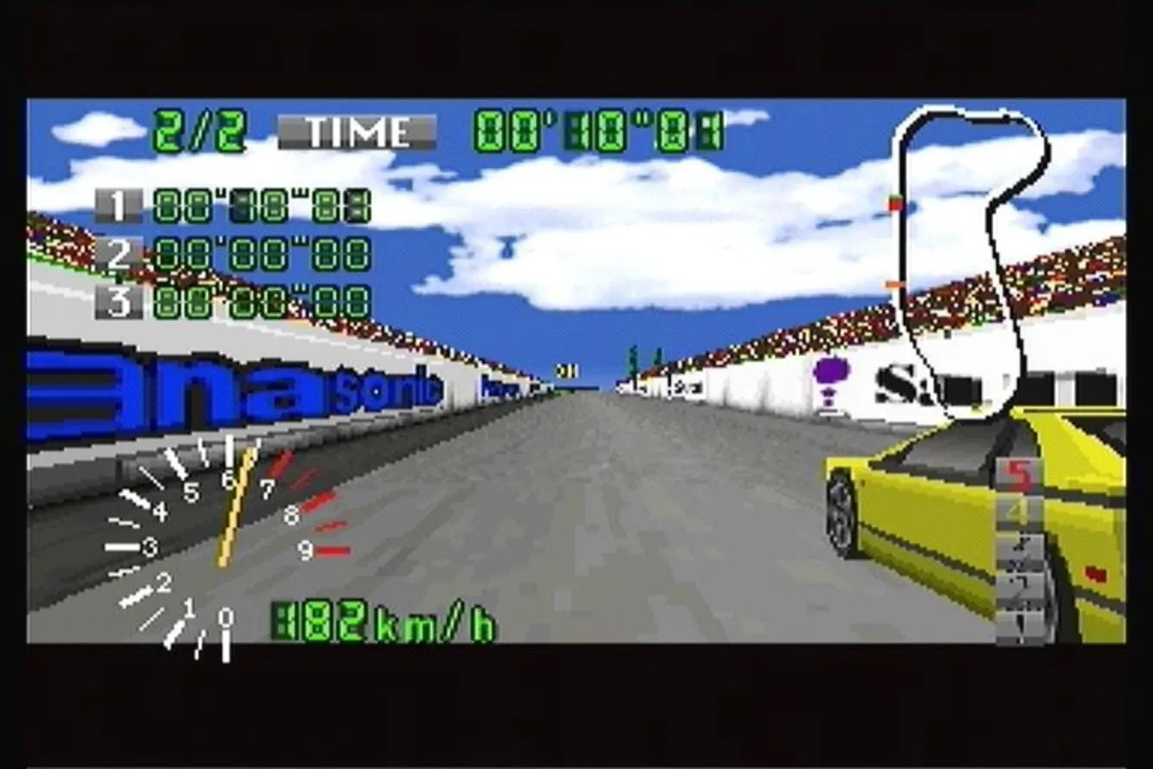 Autobahn Tokio is a racing game released only in Japan for the 3DO. Players can select from four unnamed cars with different characteristics, loosely based on real car models. Three tracks are available - a city at night, a coastal highway, and a forest track. Players race against one CPU opponent, while trying to hit checkpoints in the quickest time possible. Both automatic and manual transmissions are available for each car. Cars cannot be tuned, and there is no two-player option. Despite being released only in Japan, all menus and game text is in English.