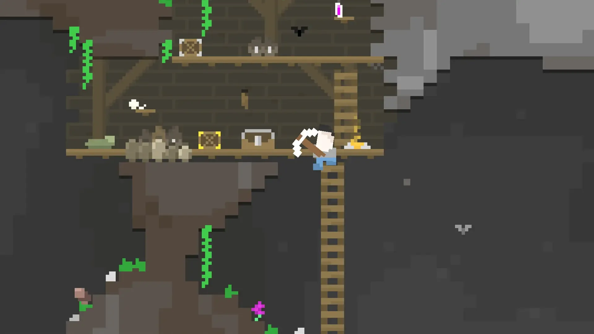 Fast digging game. Explore vast worlds, mine gems, find loot and secrets. Expand your camp. Upgrade yourself, fight monsters, survive.