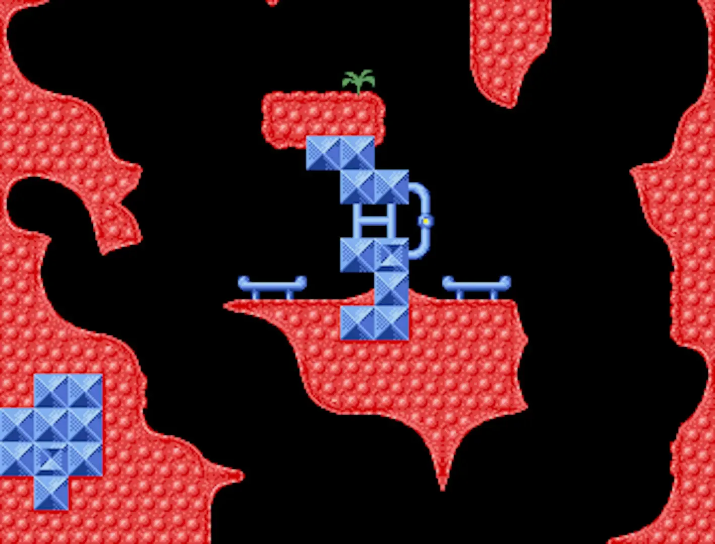 GF2, as it is known to its friends, is one of the most advanced cave-flyers available. Borrowing its name and looks from the original Gravity Force by Kingsoft, which was an advanced Thrust clone, it diverts from its namesake by being a two-player-only game. GF2 stands out not only because of its clean graphics and sense of humour, but also because of its enormous range of preferences in order to customise the physics variables and capabilities of the players ship so as to make the game perfectly suited to each player. Furthermore, it has a stunning amount of levels on varying themes, more of which could be created with the level editor (available to registered users). The different levels of GF2 are split up into themes such as Grass Worlds, Lego Worlds, Slime Worlds and Boring Worlds. Each player starts out on his home base with a fully loaded ship. The objective is simply to destroy the player by any means possible, be they to simply shoot him down, bomb him or to ram him into a wall, thereby depleting his shields. If your shields, fuel or ammunition is running low, you must return to your (or even you opponent's) base to refuel. However, landing makes you vulnerable to enemy bombardments. Apart from the plain dogfighting levels, GF2 also offers a large amount of race levels, where the players race around a maze-like level where they must pass check points. Flying your ship around these levels is not as easy as it may seem, since you must fight gravity, just as in Thrust, but unlike Asteroids. GF2 was part, if not the progenitor, of the cave-flying trend that hit the Amiga in the mid-nineties, alongside games such as Bratwurst or Turboraketti.