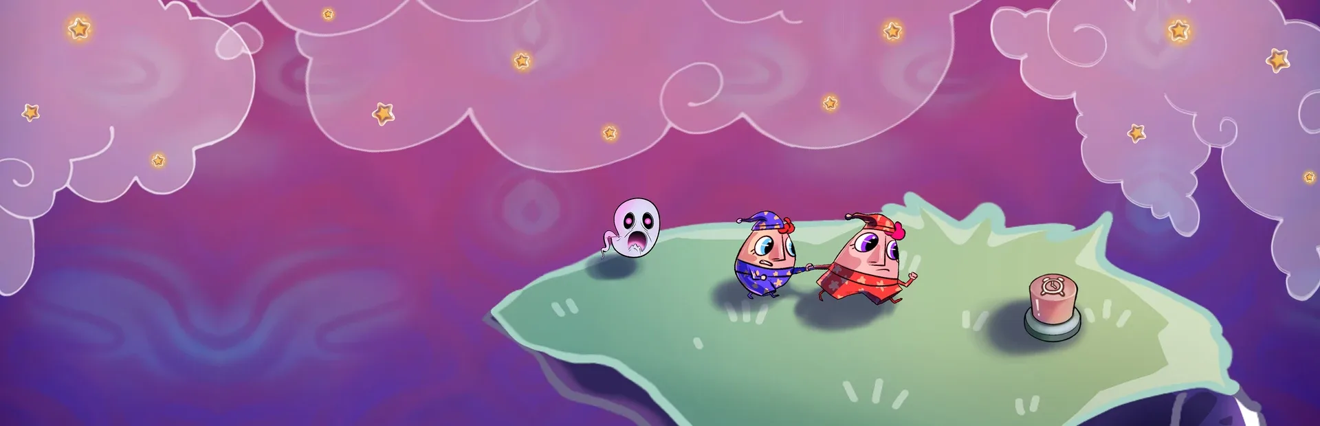 Control two characters at once in this fun puzzle game! Guide them to the "WAKE" button together, avoid sneaky ghosts, and solve tricky puzzles that get harder with every level!